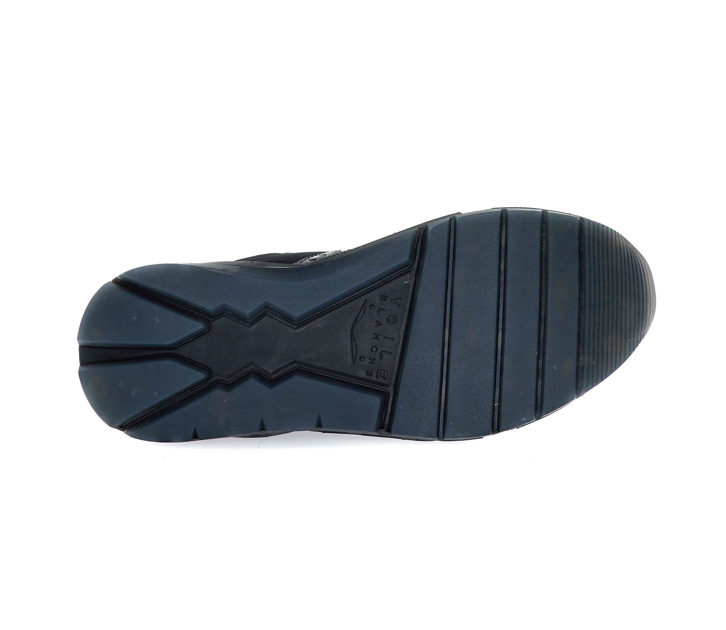 Leggera, dinamica, cool: la sneaker da città incontra lo stile unico di Voile Blanche, dando vita ad un modello ispirato ai modelli running. La tomaia in tessuto tecnico e suede gioca con le tonalità metropolitane, ritmate da traforature, impunture a vista e inserti a contrasti. Il logo tridimensionale sul tallone accendono l’energia di un modello completato da suola bold in gomma ultra leggera, con stampa serigrafata sul bordo.
