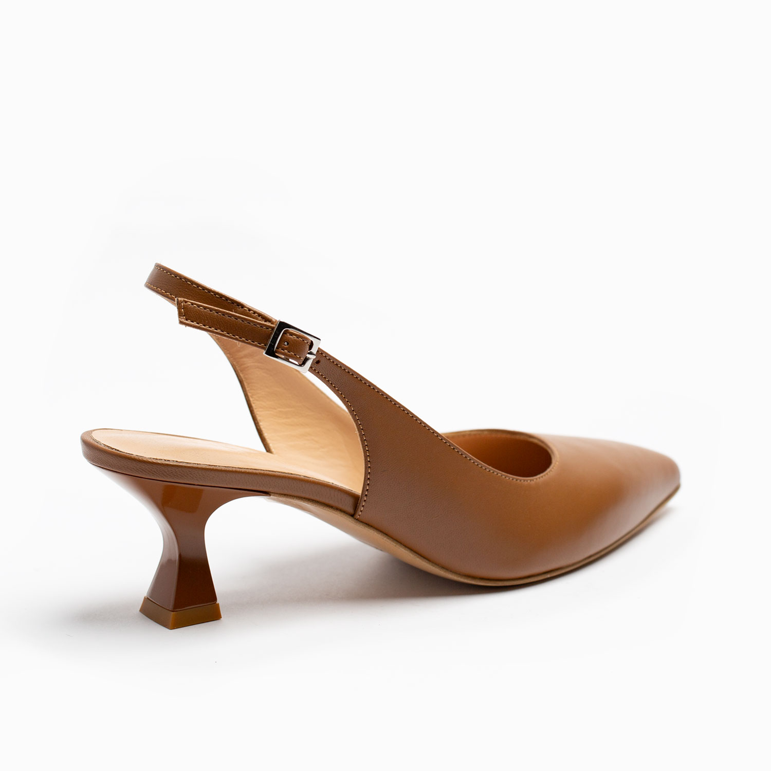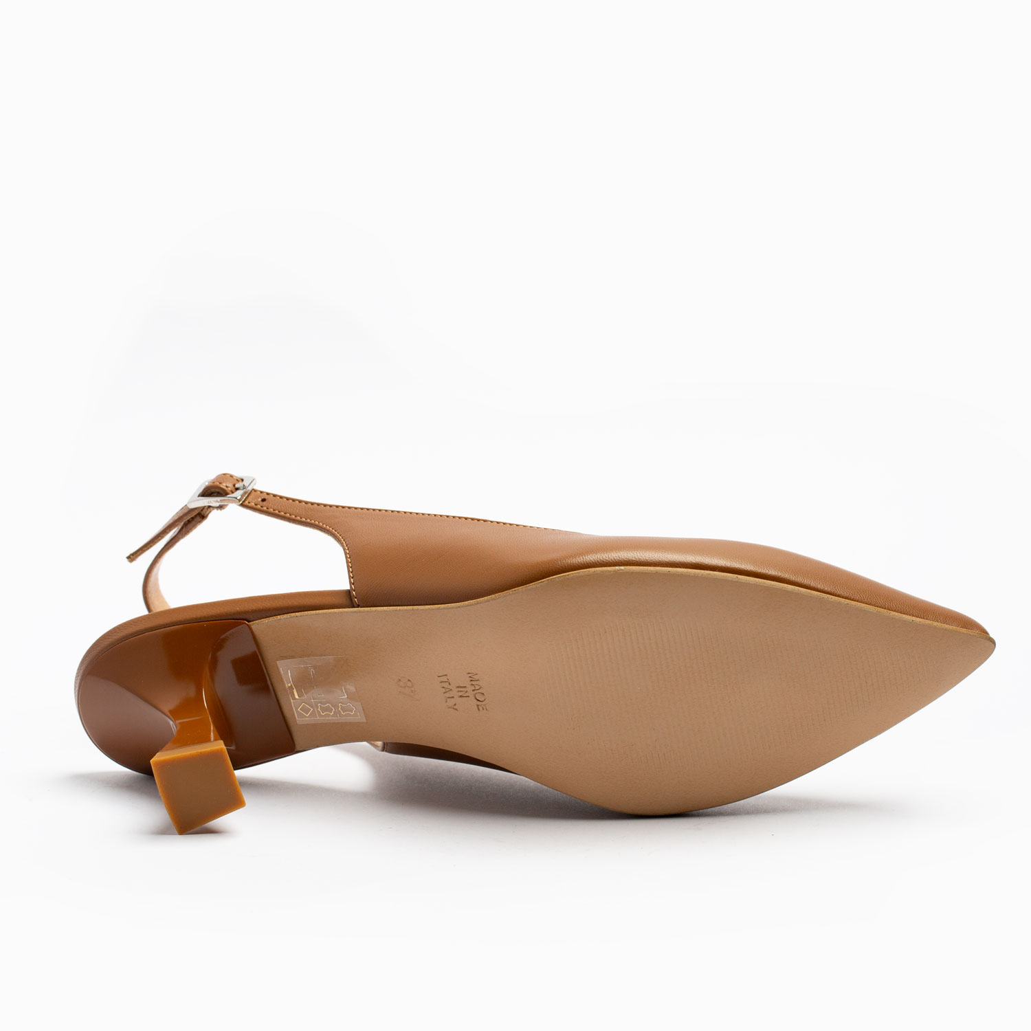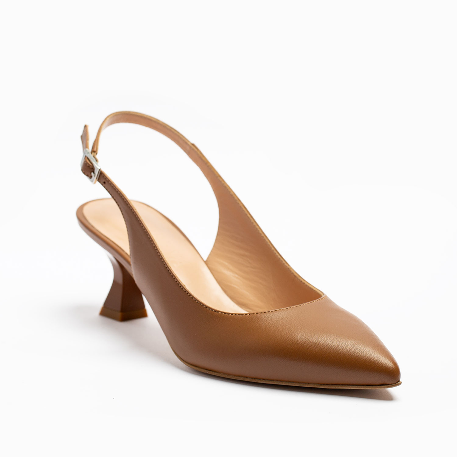 Dal design classico e formale che combina comfort e stile. Queste slingback sono caratterizzate da un cinturino che avvolge il tallone e si chiude con una fibbia regolabile, garantendo una calzata sicura. Il tacco a rocchetto di 5 cm offre un’altezza moderata che è comoda da indossare per lunghe giornate o serate. Questo tipo di scarpe è perfetto per completare un look formale o elegante, aggiungendo un tocco di raffinatezza e femminilità.