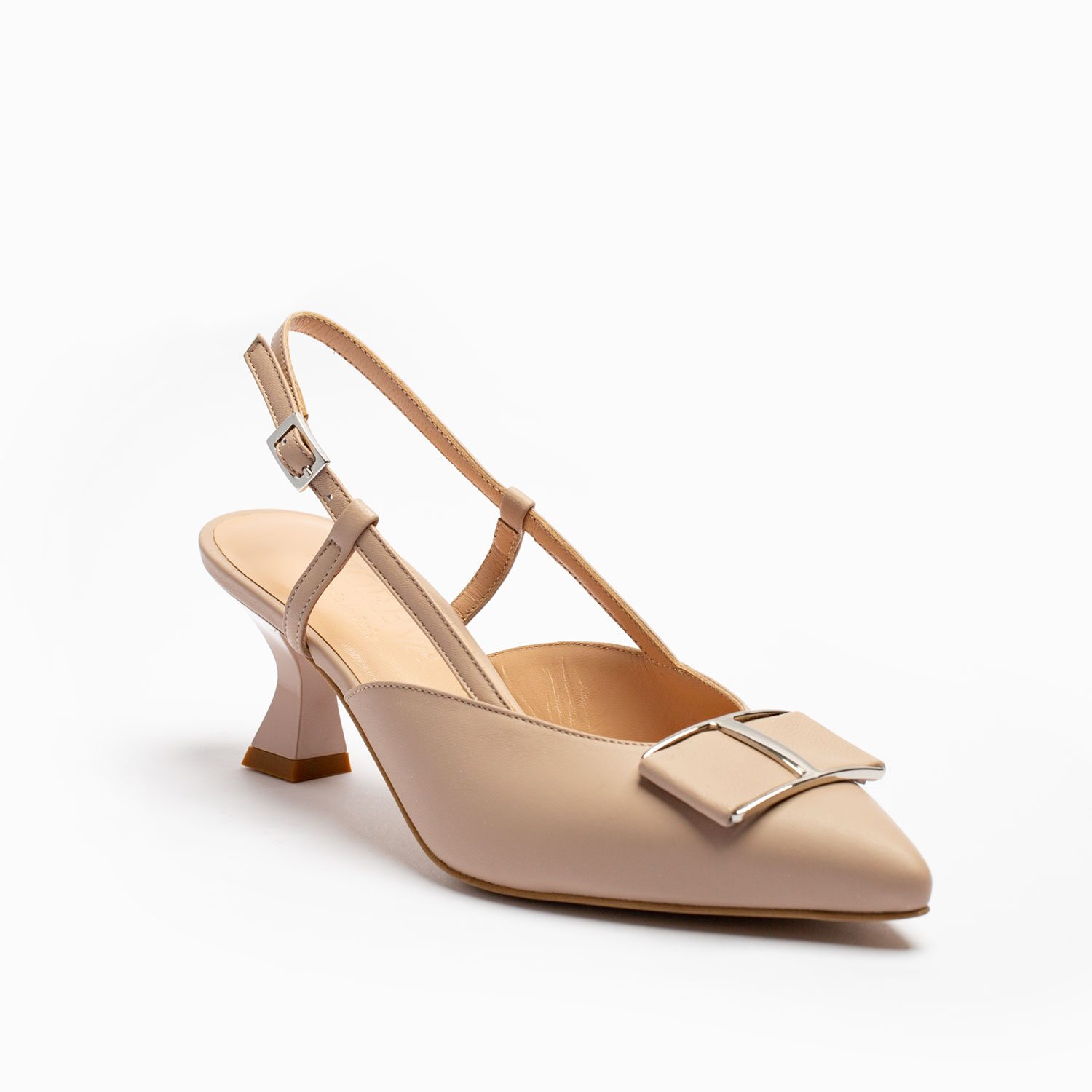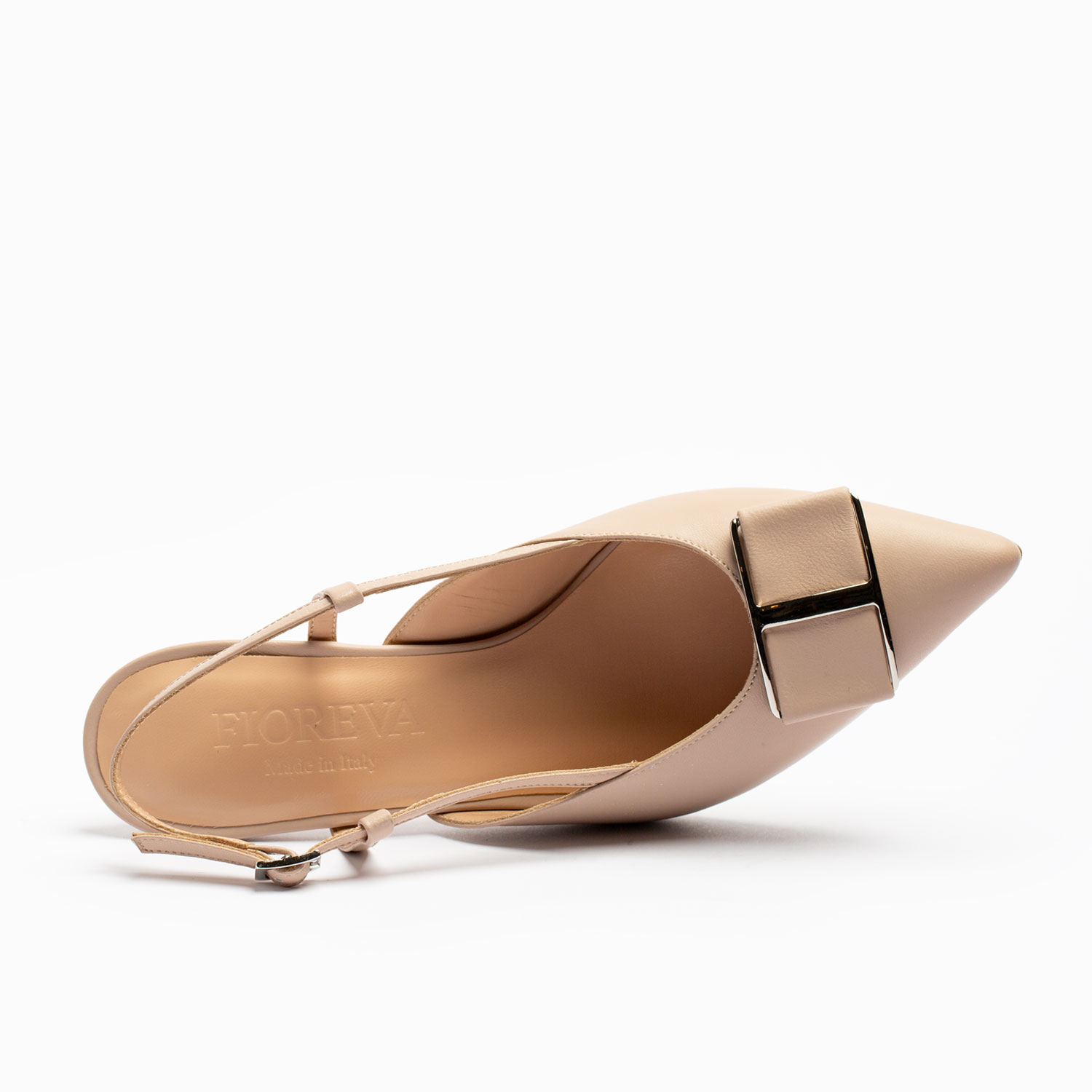 Realizzate in pelle di alta qualità ideali per svariate occasioni, rappresentano una scelta versatile che può essere abbinata a un abito formale, a pantaloni eleganti, o persino a un paio di jeans per elevare un look casual. Queste slingback in pelle con accessorio in punta incarnano l’eleganza e la praticità, diventando un complemento indispensabile per il guardaroba di qualsiasi donna attenta allo stile e alla moda.